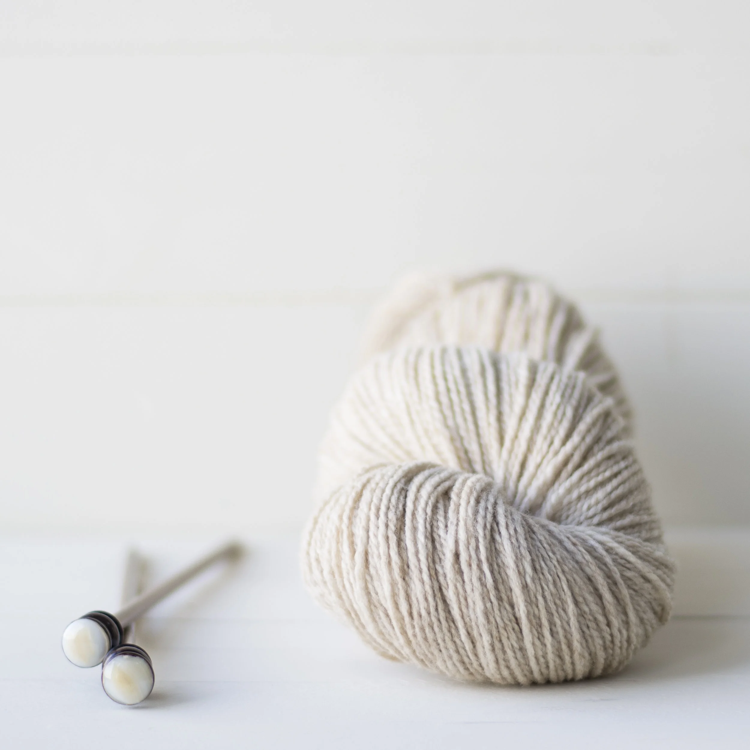 CVM Worsted is a two-ply, woolen-spun yarn that’s soft and resilient, with a slightly crisp hand. Its two-ply structure makes it ideal for patterns that incorporate lace and eyelets into their designs. The fact that it’s been spun using the woolen method means that it’s light, warm, and very elastic. Woolen yarns tend to be happy knit with a wider variety of needle sizes and in a wider variety of gauges than their worsted spun counterparts, both because their fuzzier texture will fill in the gaps between stitches and because they contain a lot of air, and can thus be compressed a bit at tighter gauges without distorting the stitches. We’ve found this yarn to be happiest at around sixteen stitches over four inches, knit on US 7 needles (4.5mm), but as always, it’s crucial to get to know this yarn by knitting a swatch to get your preferred gauge. You’ll find a lot more information about swatching with CVM Worsted over on the Sheepspot blog.