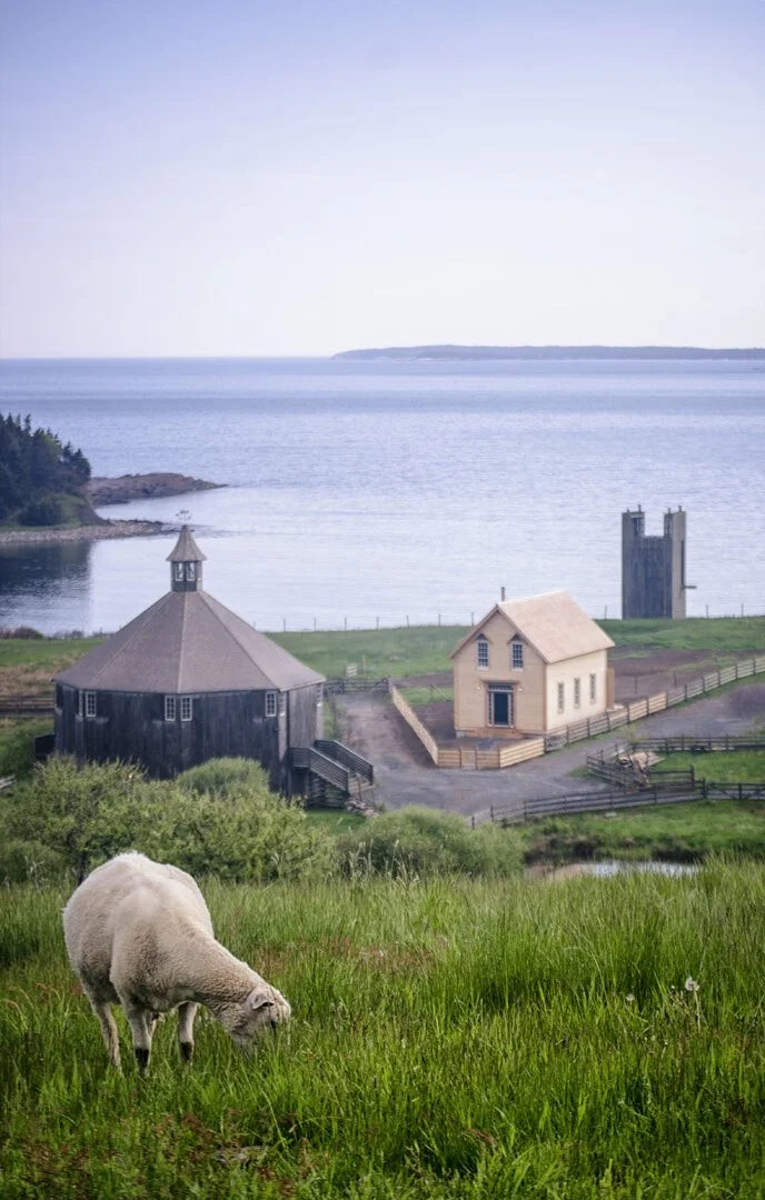 The farm sits nestled in a valley overlooking the Atlantic in Upper Kingsburg, Nova Scotia. Boasting views of the Atlantic, Gaff Point, and rolling pastures, the site is breathtakingly beautiful. It even has sheep!